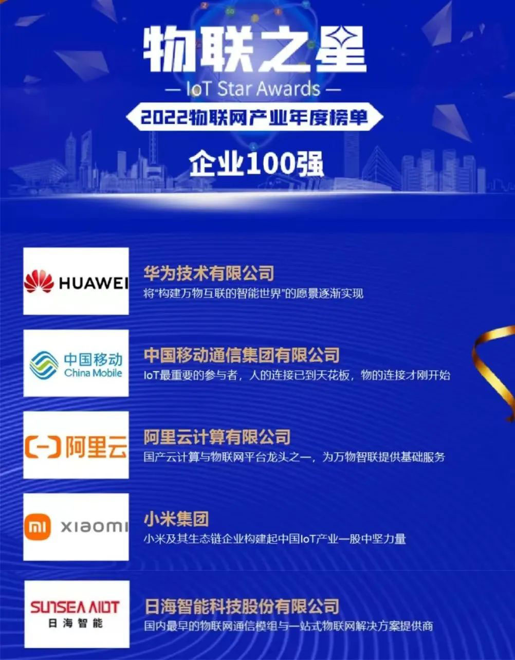 该年度榜单以公司业绩规模与人员规模较大且稳定、近三年业绩规模与净增长率表现良好、研发投入金额与占比较大并有行业影响力的新品发布、同时在物联网领域行业地位突出为四个评选标准进行严格、客观评选。飞速发展的物联网行业群雄并起,优秀企业不断涌现,乐鱼leyu公司智能脱颖而出,与华为、中国移动、阿里云计算等知名企业齐头并进、共同成为中国物联网企业百强,背后是近三十年的实力积淀。
